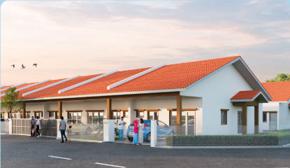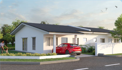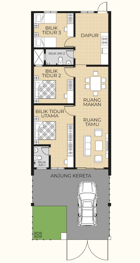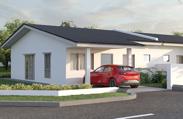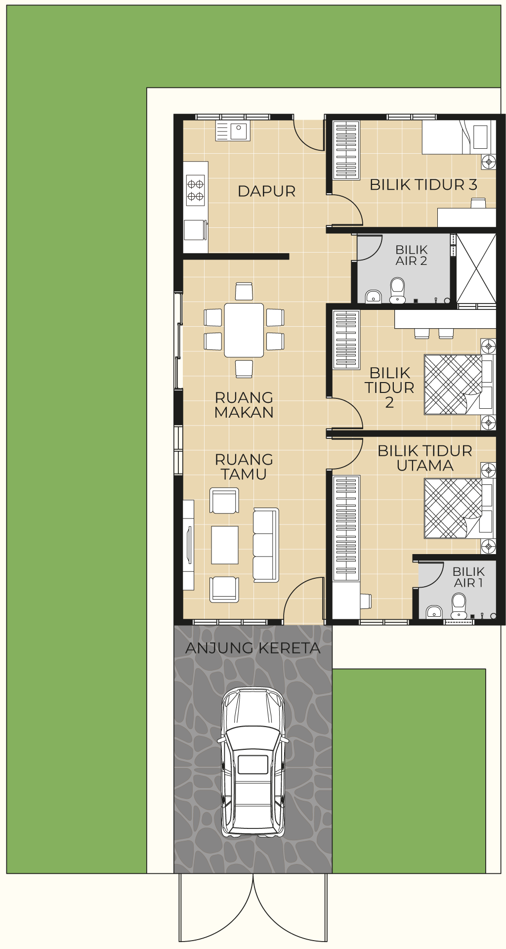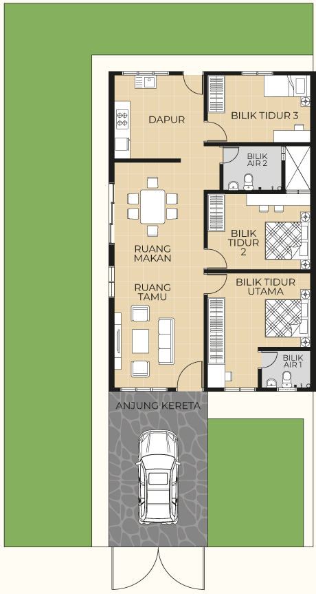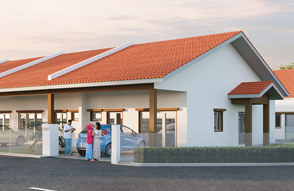 Kemasan konkrit bercorak di kawasan anjung kereta – tahan lama, elegan dan mudah diselenggara.